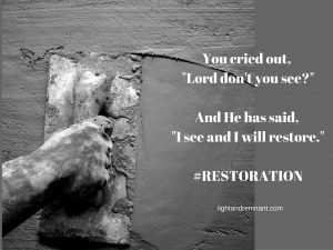 And the Lord would say to you today, “I see and I will restore.”